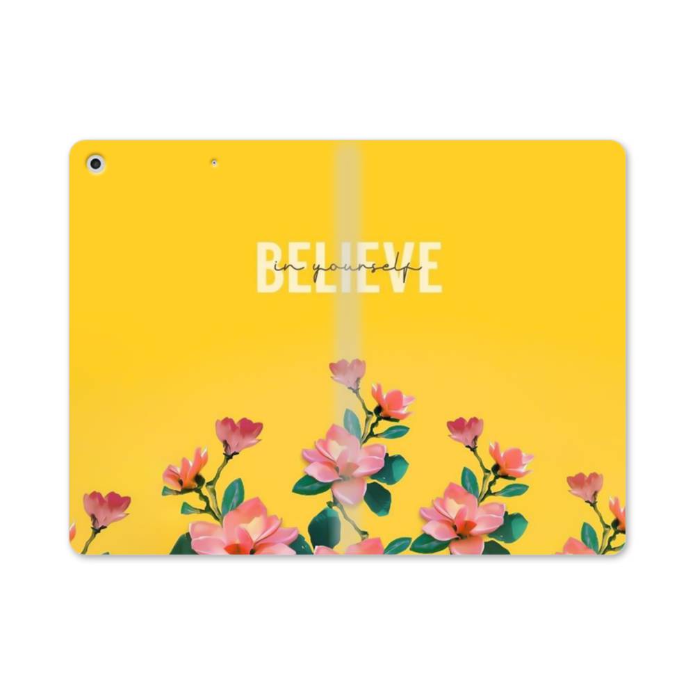 英文字入りオレンジ色背景の花柄 iPad mini (2019) 手帳型ケース