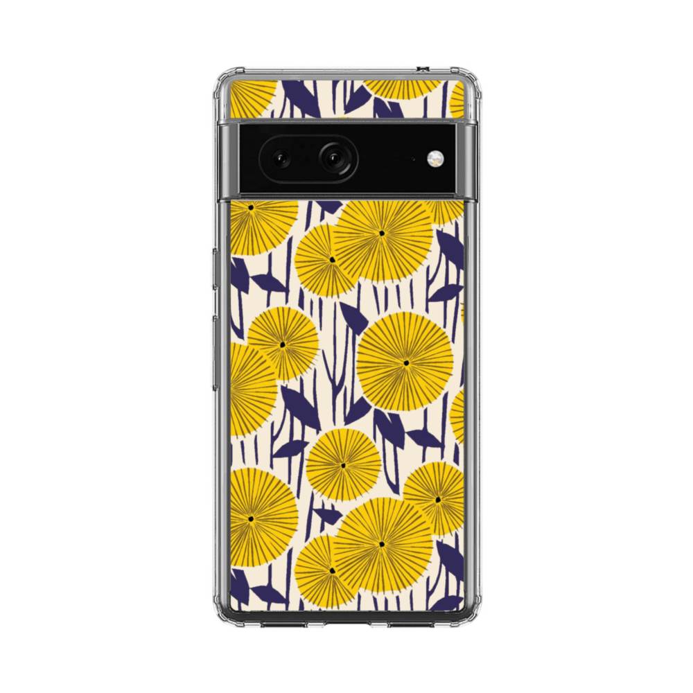 デザイン・花のモチーフ:黄色のひまわり&紺色の葉 Google Pixel 7 クリアケース
