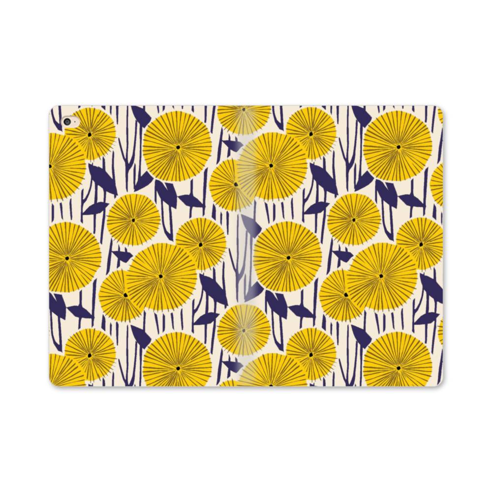 デザイン・花のモチーフ:黄色のひまわり&紺色の葉 iPad mini 4 手帳型ケース