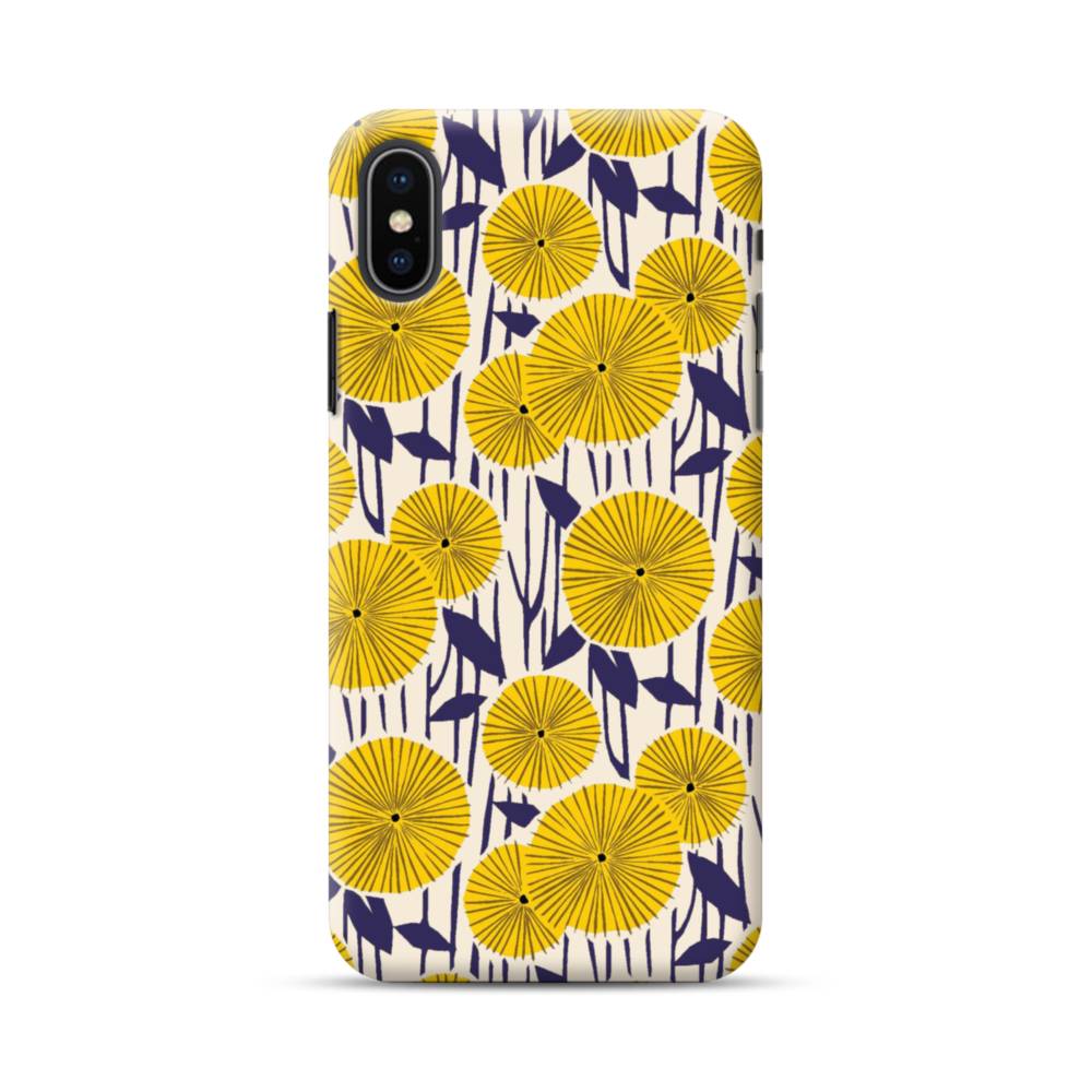 デザイン・花のモチーフ:黄色のひまわり&紺色の葉 iPhone XS Max ハードケース