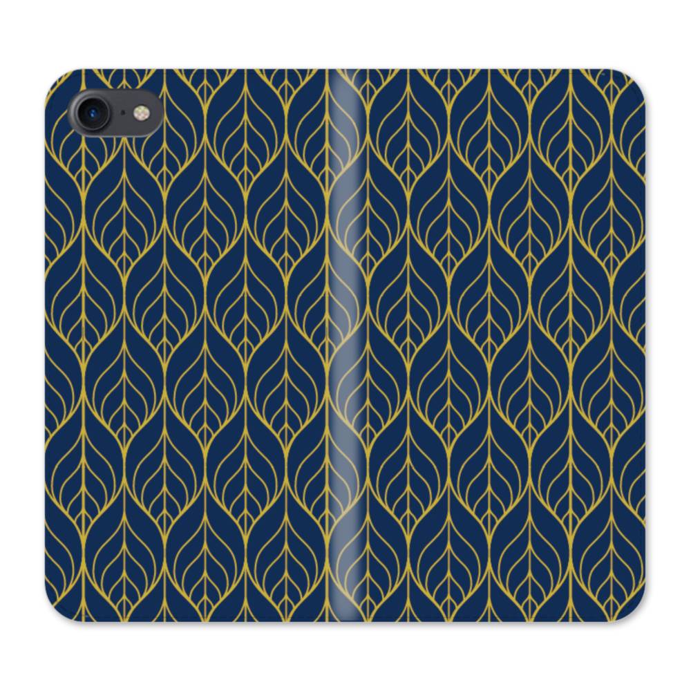 デザイン・アートなパターン:紺&イエロー iPhone SE (2020) 手帳型ケース
