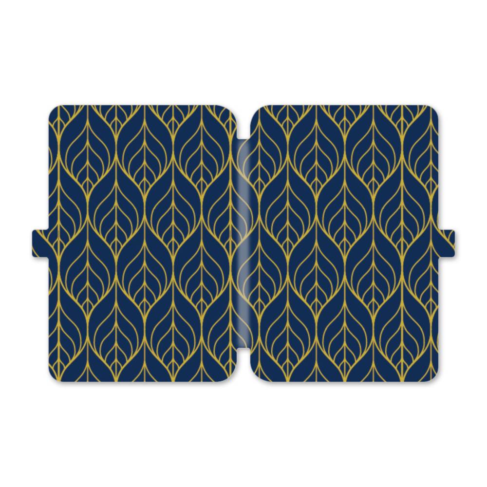 デザイン・アートなパターン:紺&イエロー Kindle Paperwhite 4 (2018) 手帳型ケース