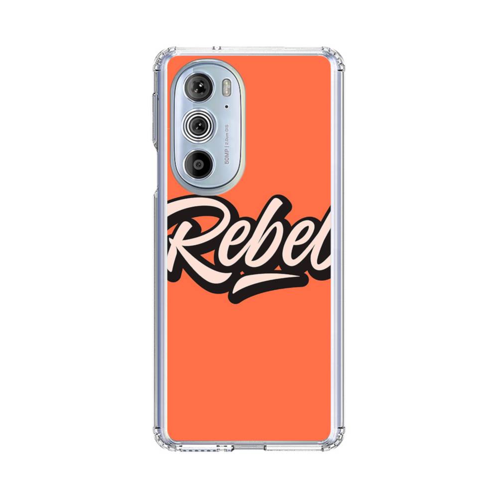 元気な赤気味オレンジに英文字(rebel) Motorola Edge Plus (2022) クリアケース
