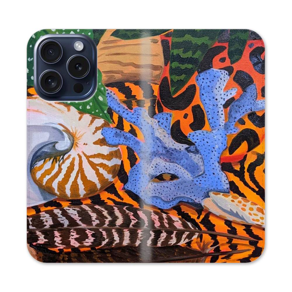 油絵・貝殻 iPhone 15 Pro 手帳型ケース