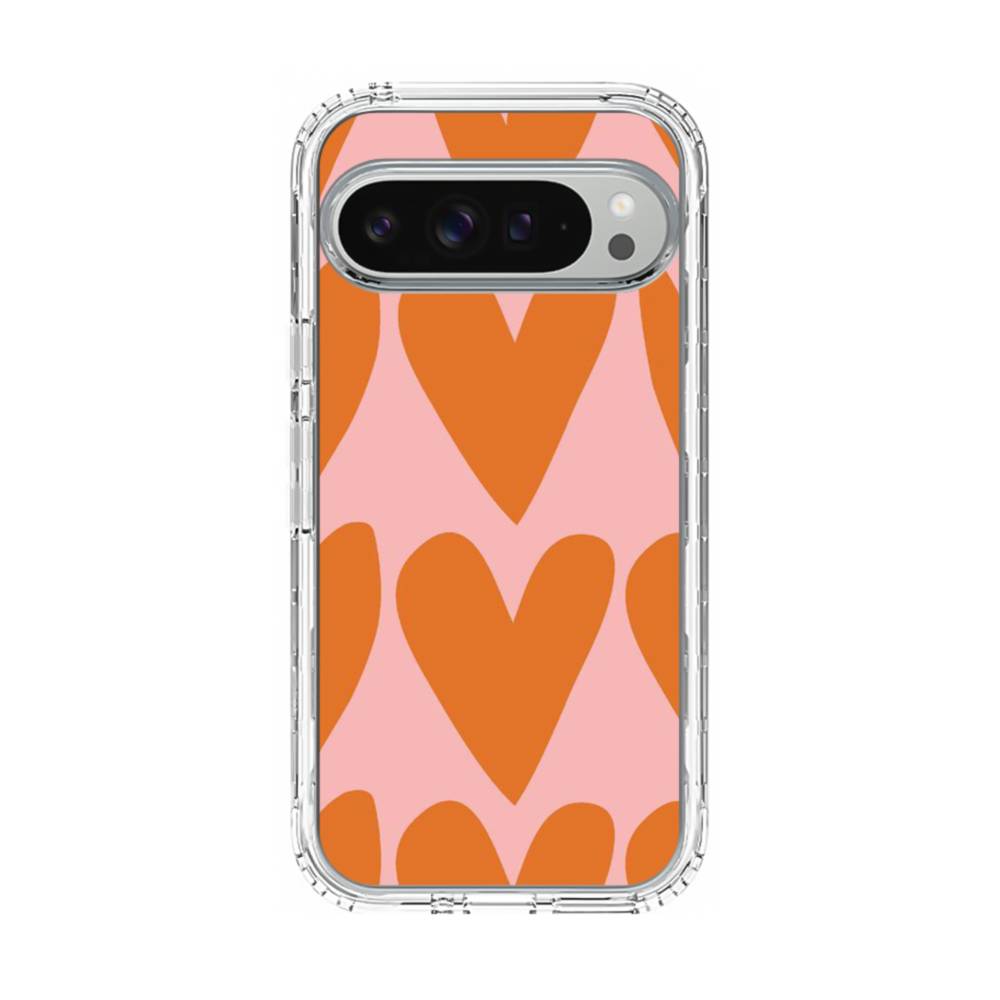 レッド&ピンク・ハート柄 Google Pixel 9 Pro XL クリアケース