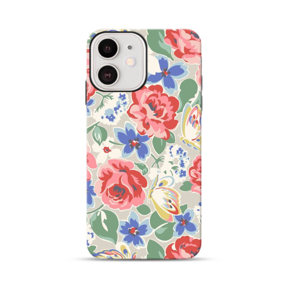 花&蝶のモチーフ iPhone 12 タフケース