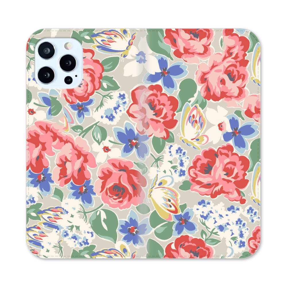 花&蝶のモチーフ iPhone 12 Pro 手帳型ケース