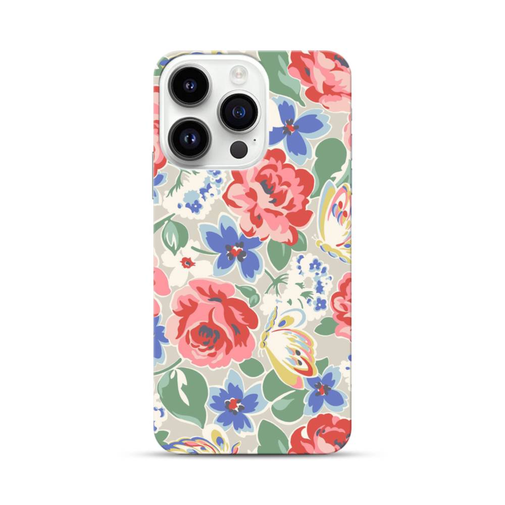 花&蝶のモチーフ iPhone 14 Pro ハードケース