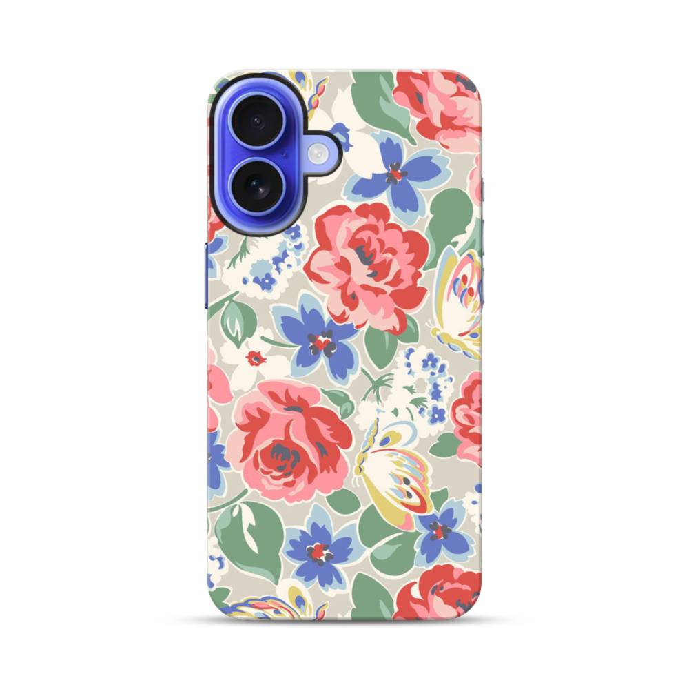 花&蝶のモチーフ iPhone 16 タフケース