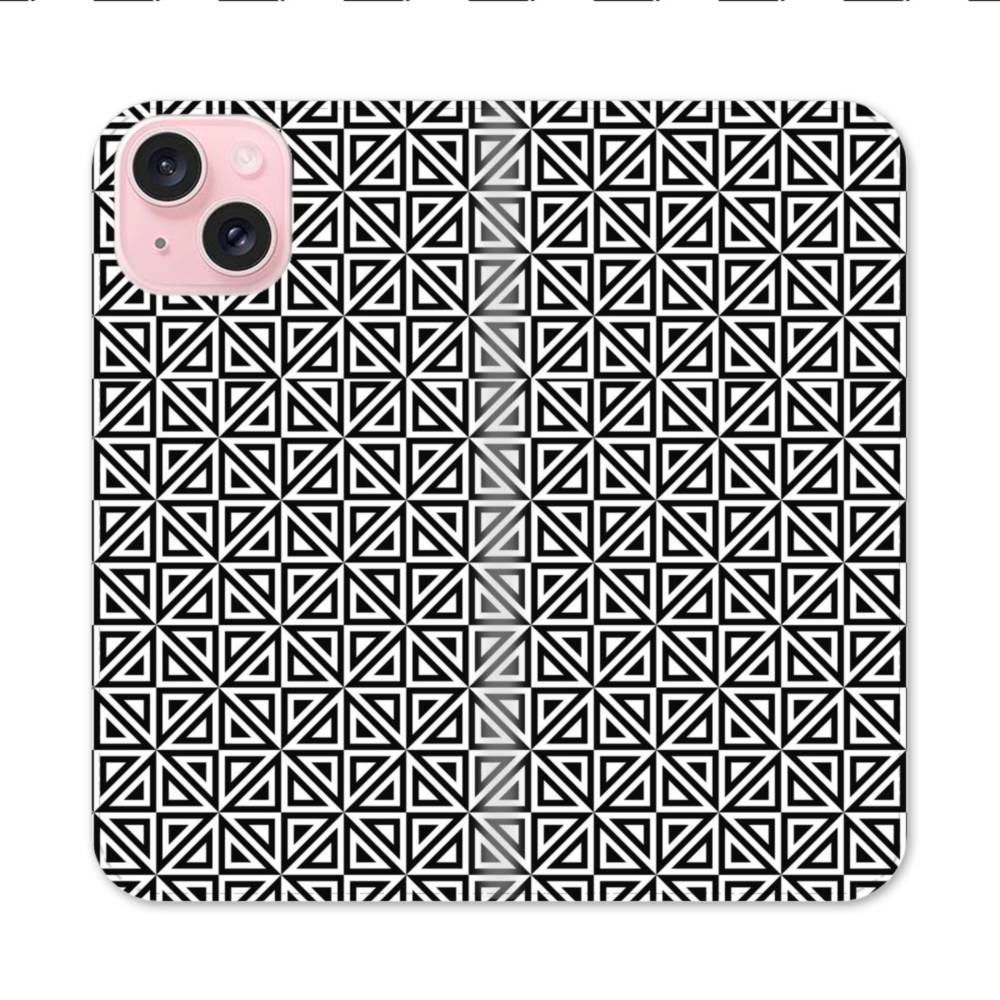 白黒系パターン:幾何図 iPhone 15 手帳型ケース