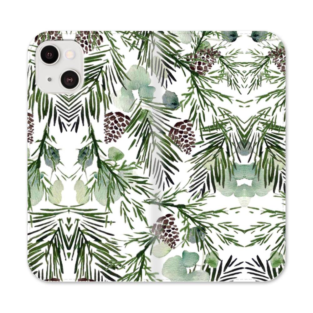 クリスマス デザイン ツリー・リーフ iPhone 13 Mini 手帳型ケース