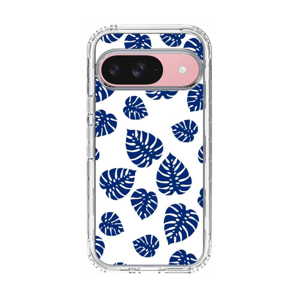 ブルー系リーフのモチーフ Google Pixel 9 クリアケース