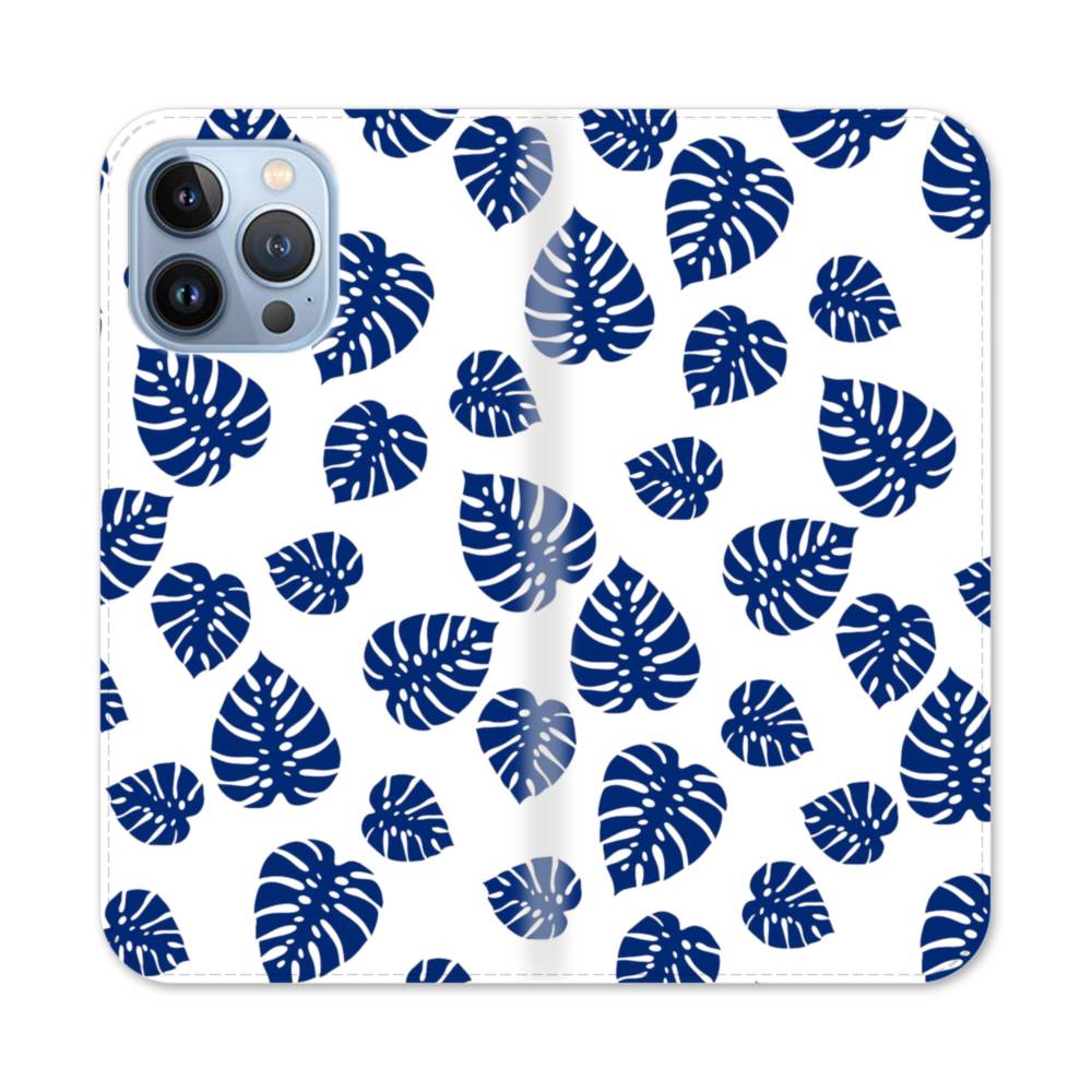 ブルー系リーフのモチーフ iPhone 13 Pro Max 手帳型ケース