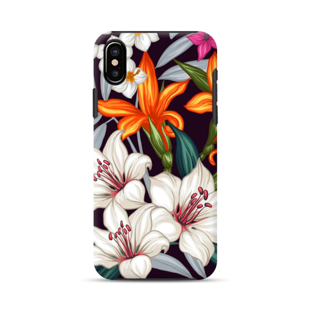 手書き風・花柄・百合 iPhone XS タフケース