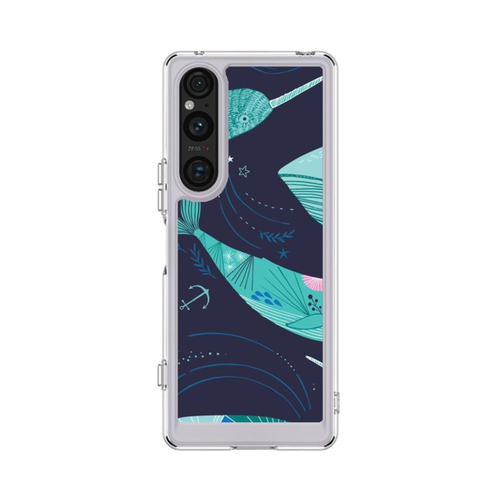 ミントグリーン・クジラ Sony Xperia 1 V クリアケース