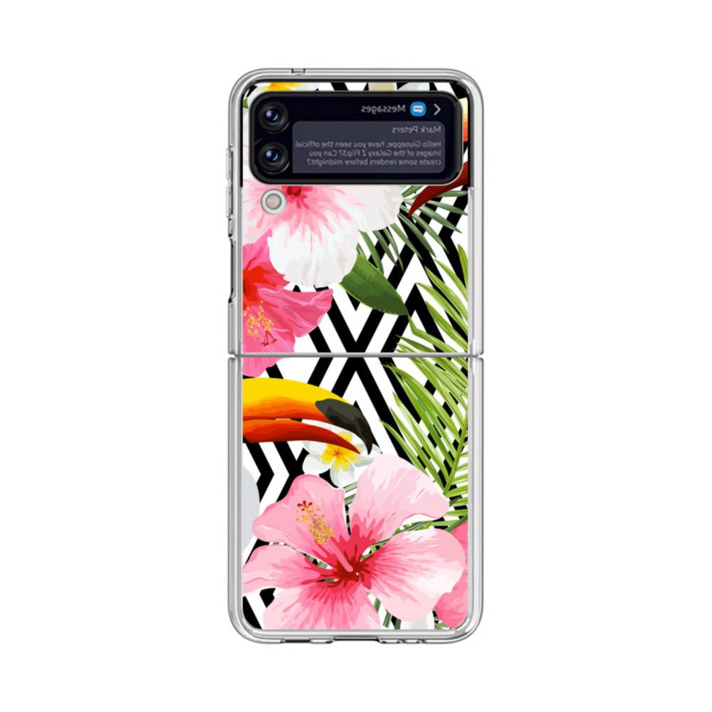南国風・花柄・鳥 Samsung Galaxy Z Flip 4 クリアケース