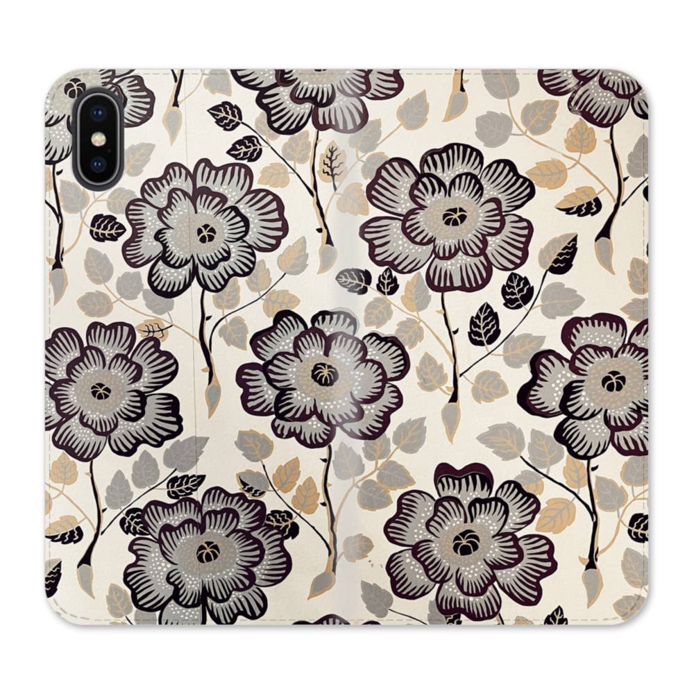 グレー・花 iPhone XS 手帳型ケース
