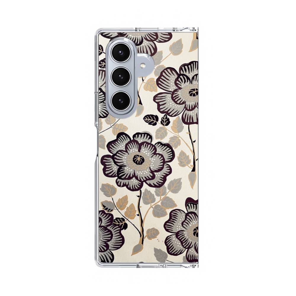 グレー・花 Samsung Galaxy Z Fold 7 クリアケース
