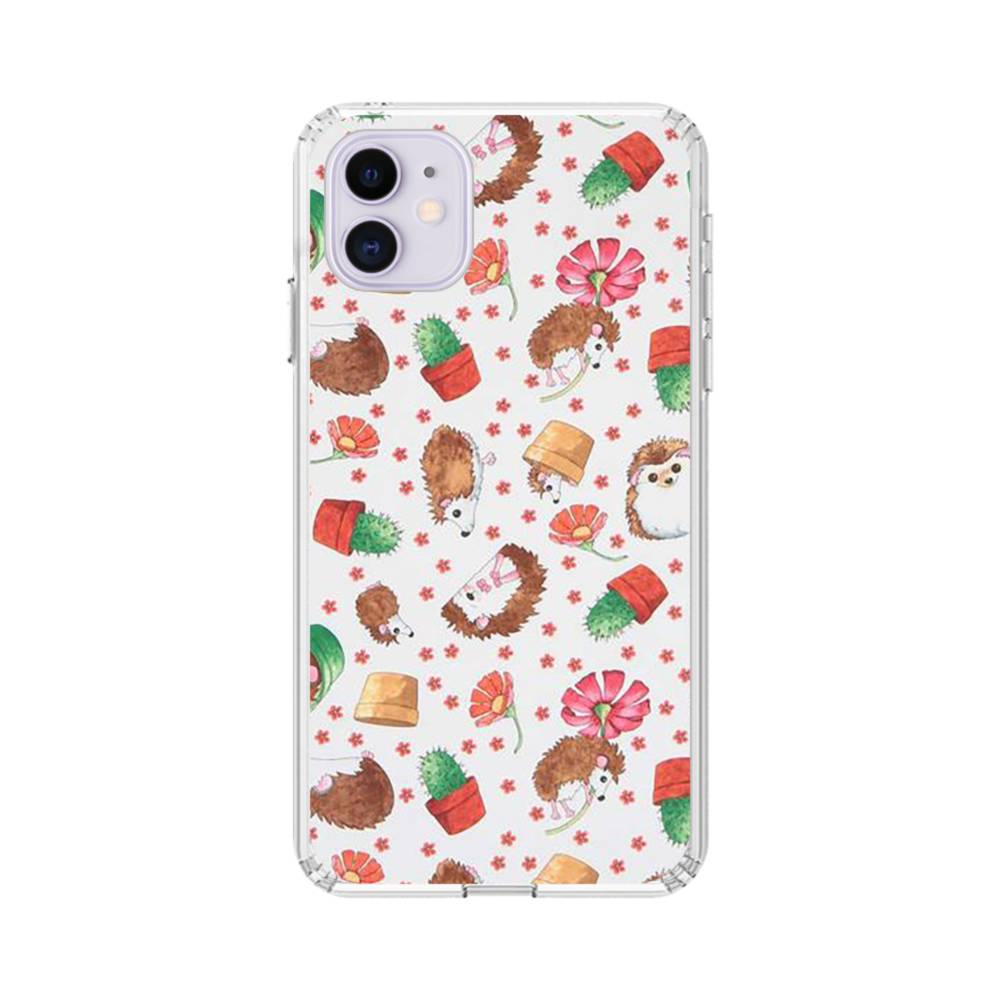 花柄&ハリネズミ iPhone 11 クリアケース