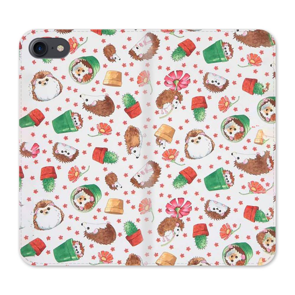 花柄&ハリネズミ iPhone SE (2020) 手帳型ケース