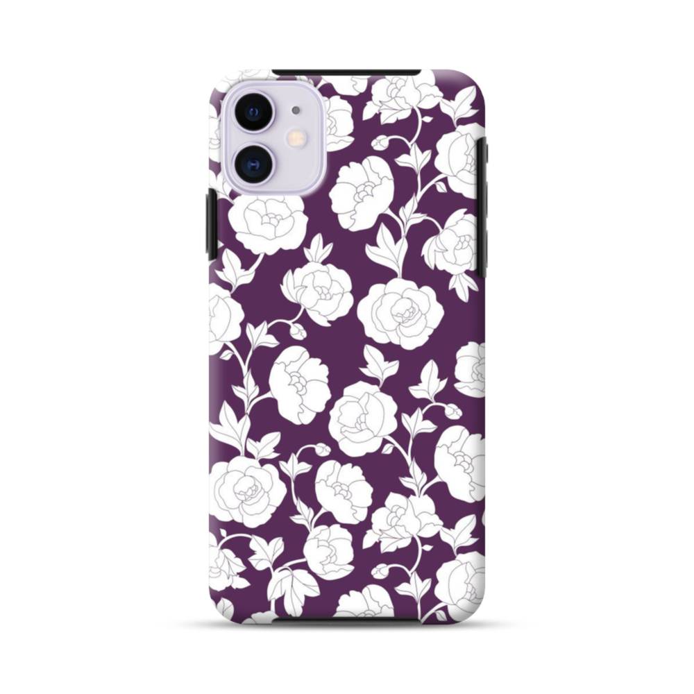 ダックパープル・バラ柄 iPhone 11 タフケース
