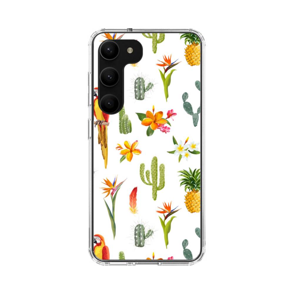 花&鳥・ミックス南国風花柄 Samsung Galaxy S23 Plus クリアケース