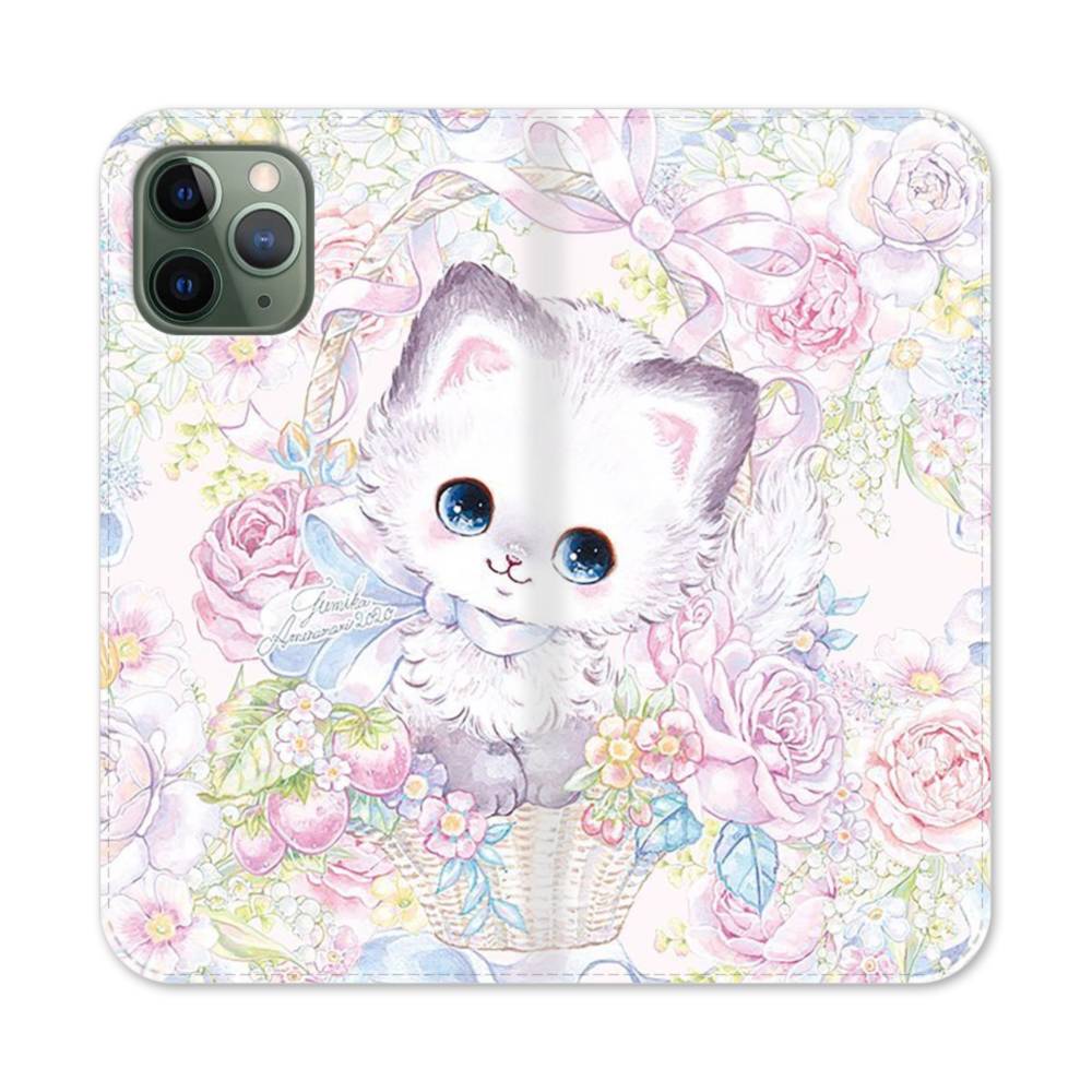 花束・子猫 iPhone 11 Pro 手帳型ケース