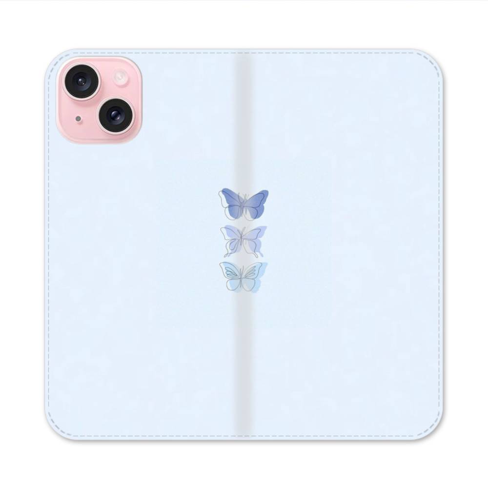 青い蝶 iPhone 15 手帳型ケース