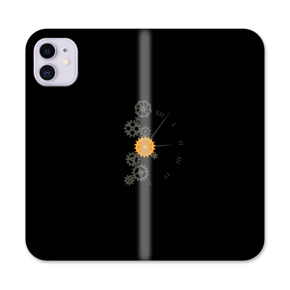 ユニークなデザイン:歯車・・オレンジ・時計 iPhone 11 手帳型ケース