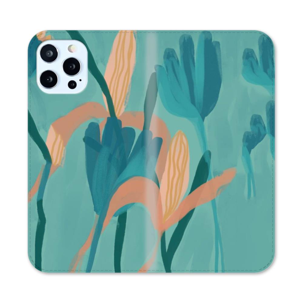 孔雀青・百合 iPhone 12 Pro 手帳型ケース