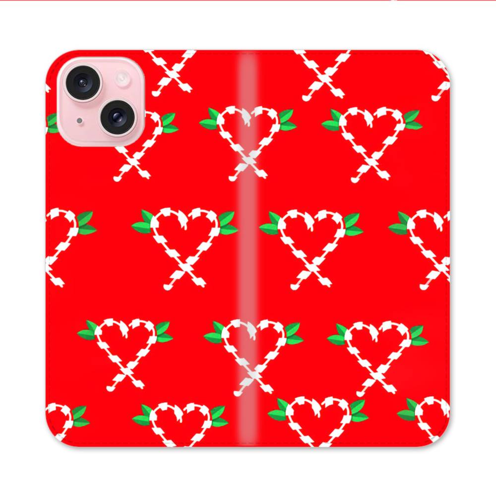 レッド背景ハート柄(クリスマス・バージョン) iPhone 15 手帳型ケース