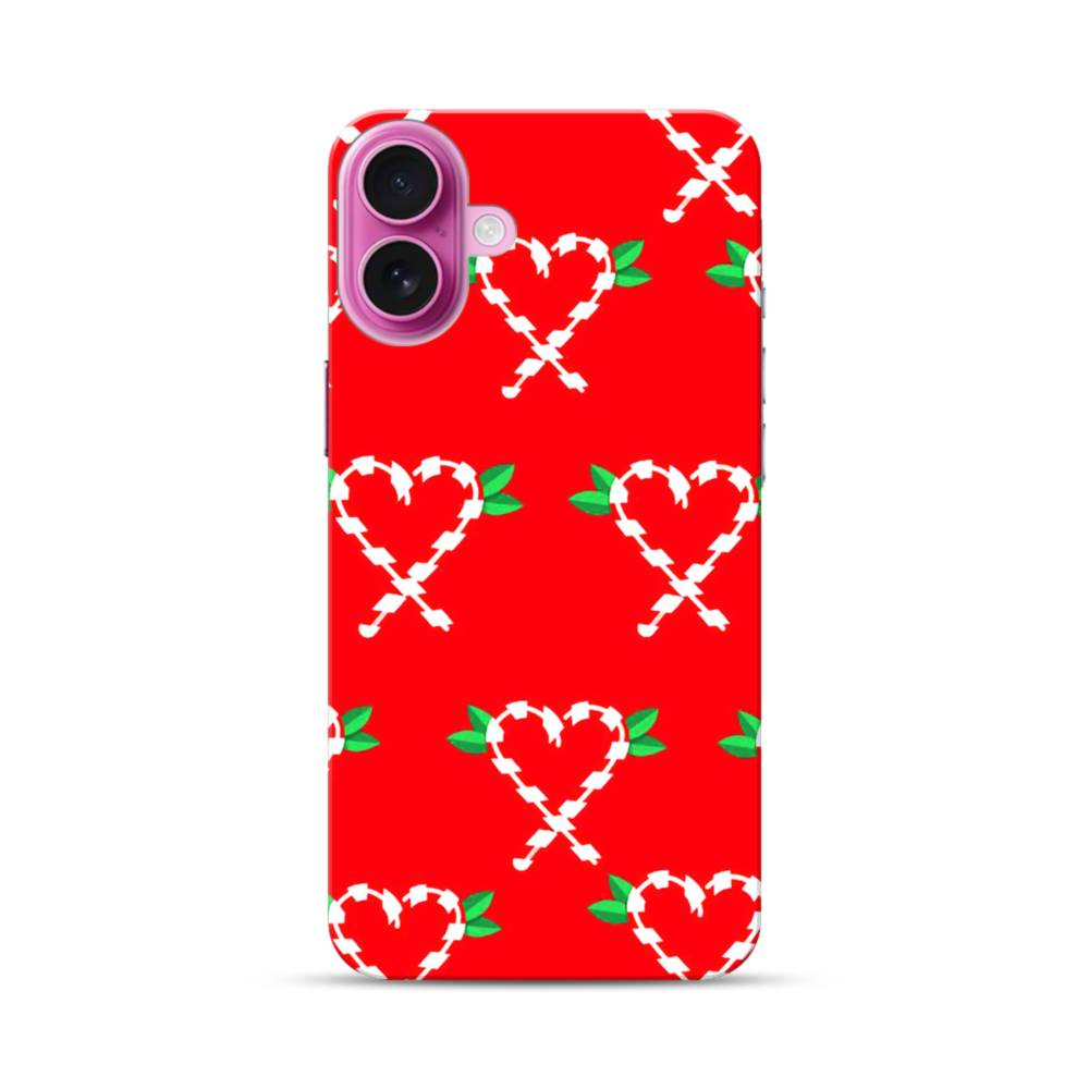 レッド背景ハート柄(クリスマス・バージョン) iPhone 16 Plus ハードケース
