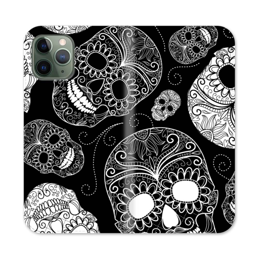 白黒系民族風・頭蓋骨 iPhone 11 Pro Max 手帳型ケース