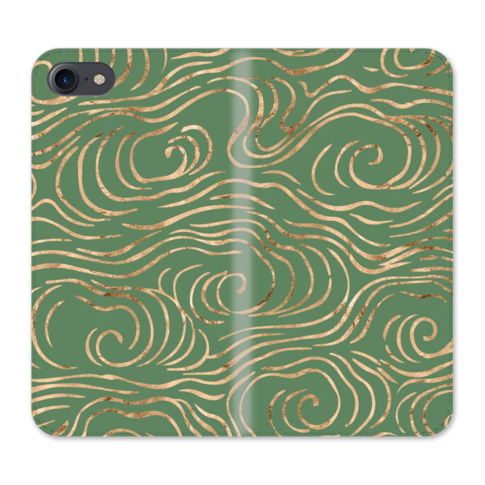 和柄・雲・松葉色 iPhone SE (2020) 手帳型ケース