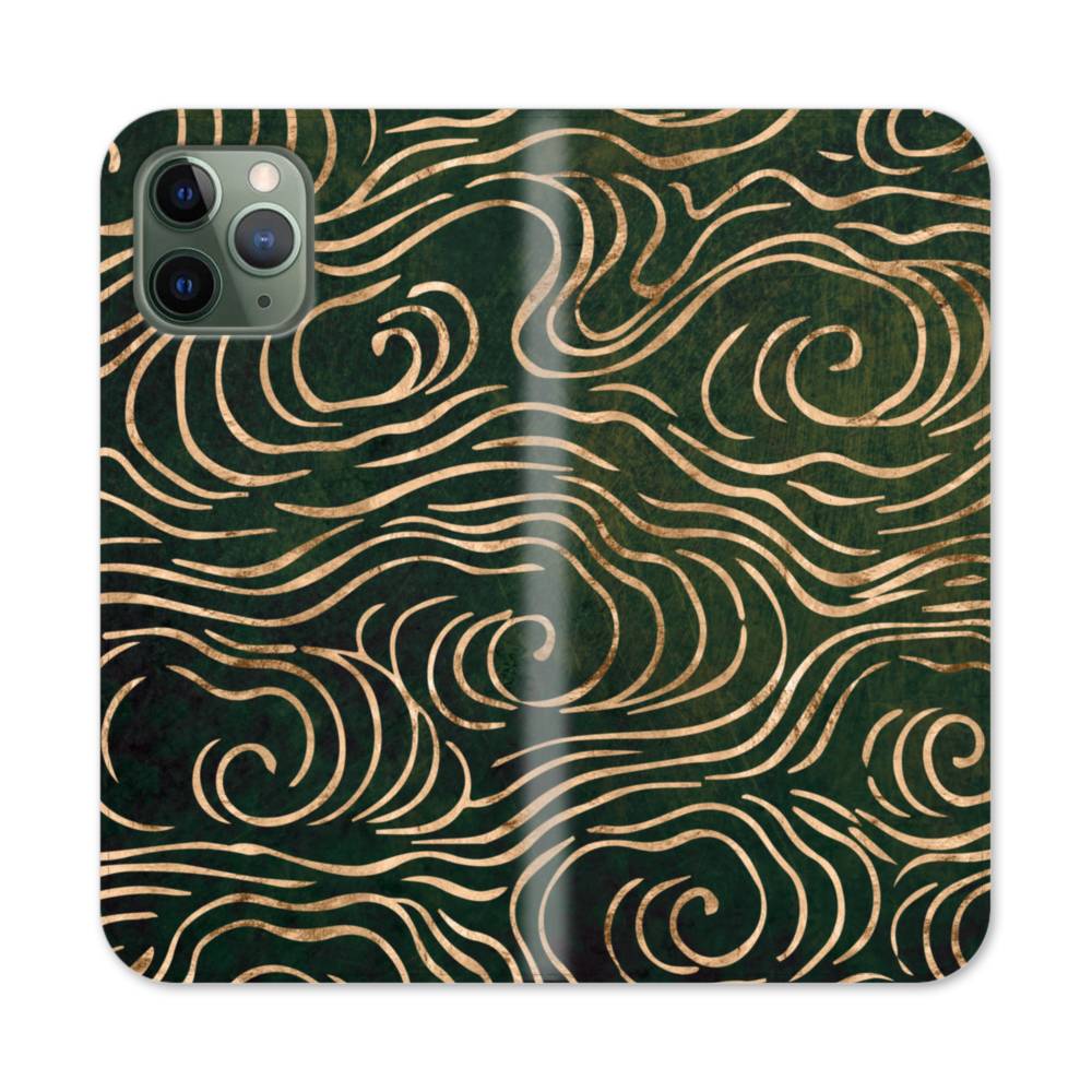 和柄・雲・リッチブラック iPhone 11 Pro 手帳型ケース