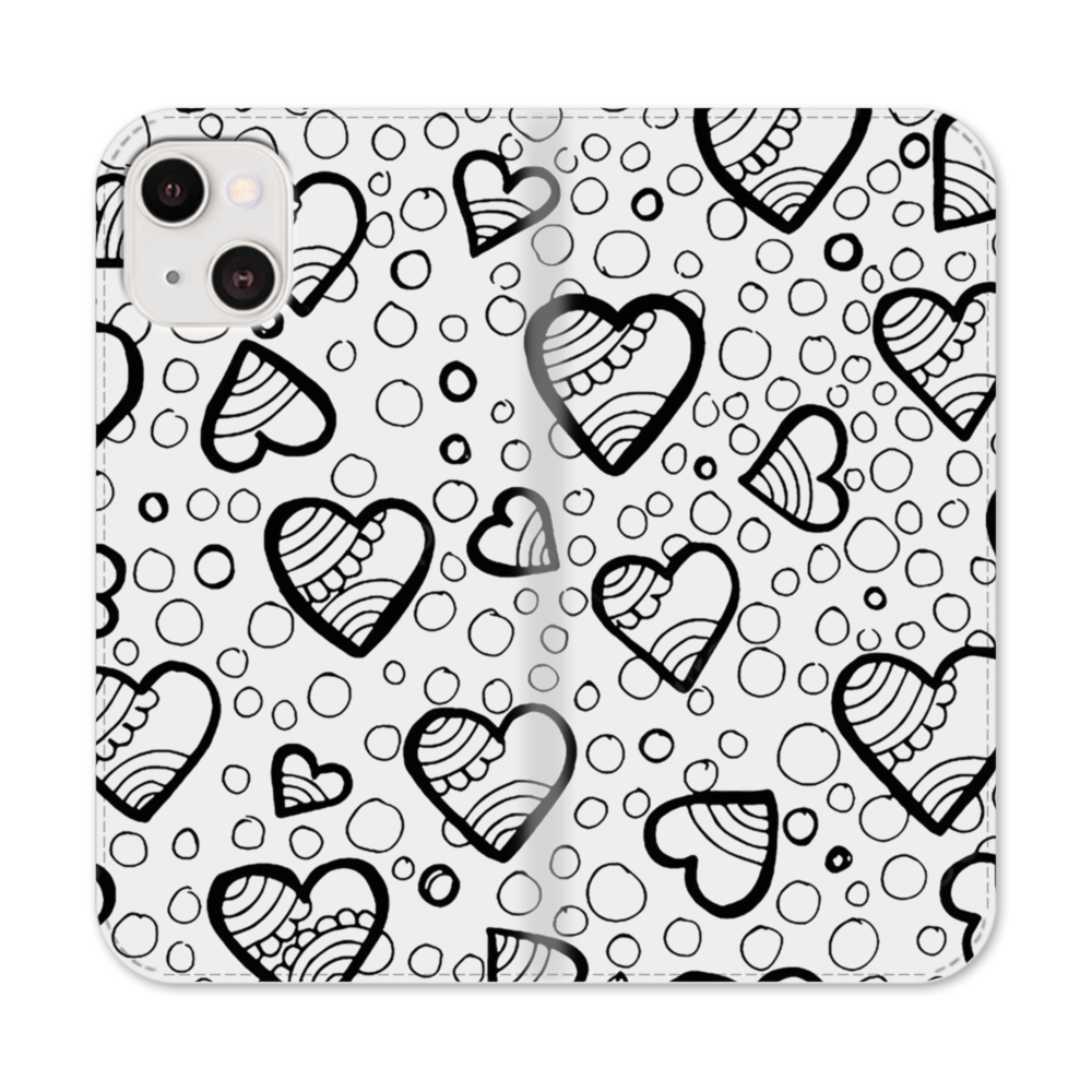 手書き風・泡・貝殻 iPhone 13 Mini 手帳型ケース