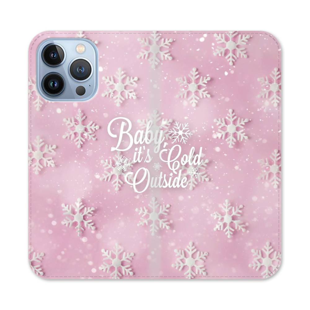 アジサイ背景にホワイトスノーフレーク iPhone 13 Pro 手帳型ケース