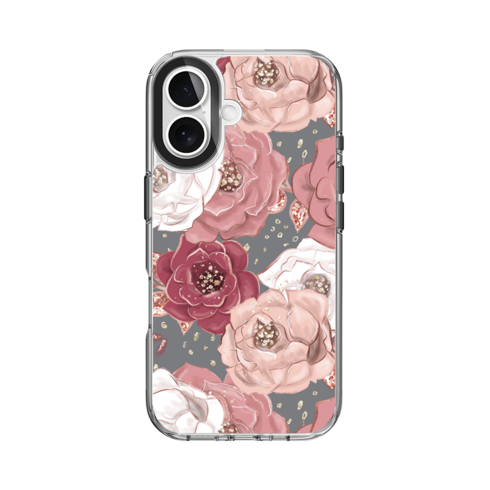 エレガントな花柄 iPhone 16 クリアケース