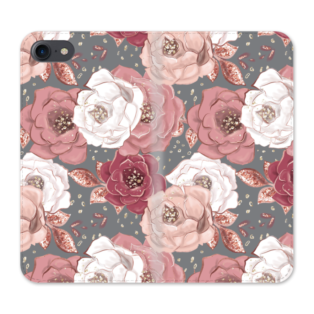エレガントな花柄 iPhone SE (2020) 手帳型ケース