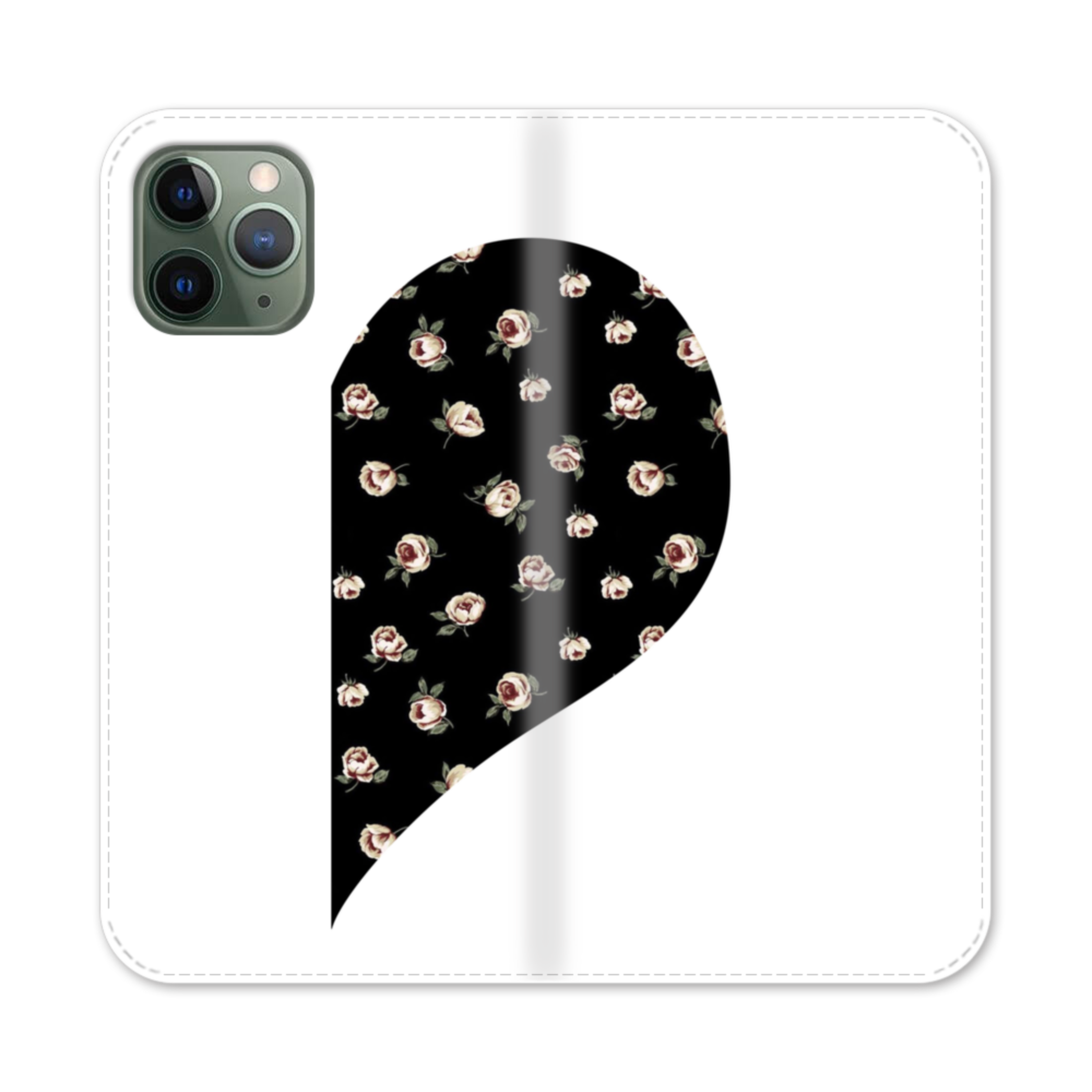 バレンタインデー・ペア・デザイン ハート(バラ柄入り・右) iPhone 11 Pro 手帳型ケース