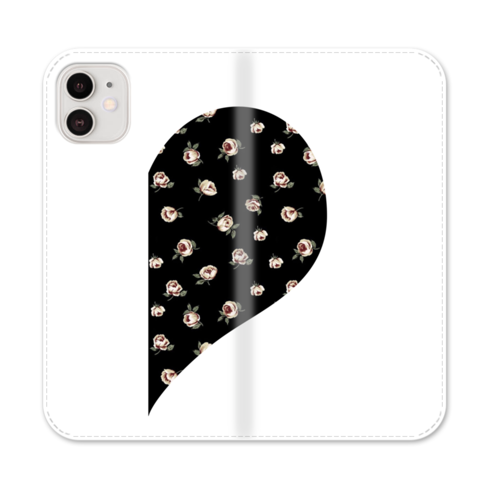 バレンタインデー・ペア・デザイン ハート(バラ柄入り・右) iPhone 12 手帳型ケース