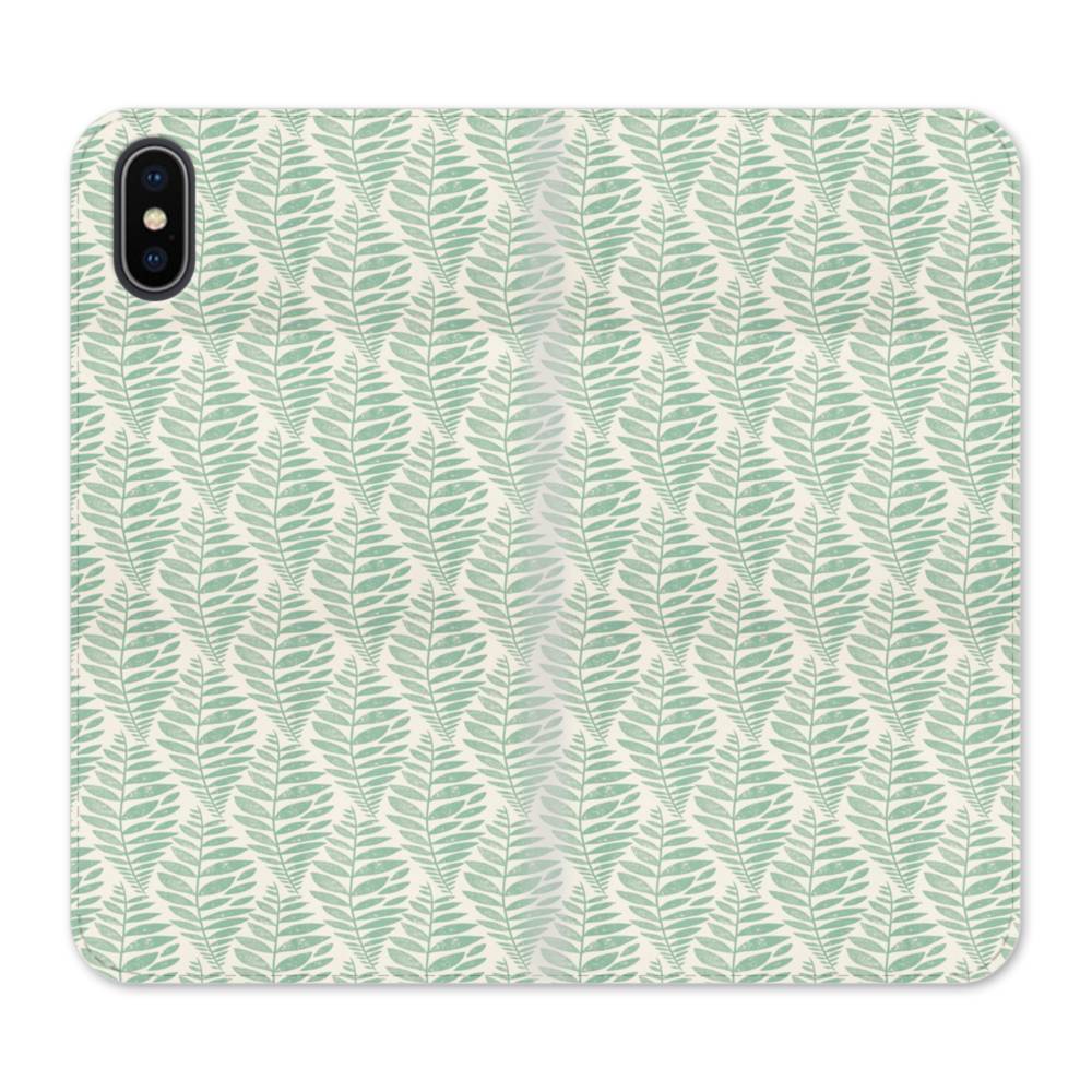 葉っぱで抽象的幾何図パターン iPhone X 手帳型ケース