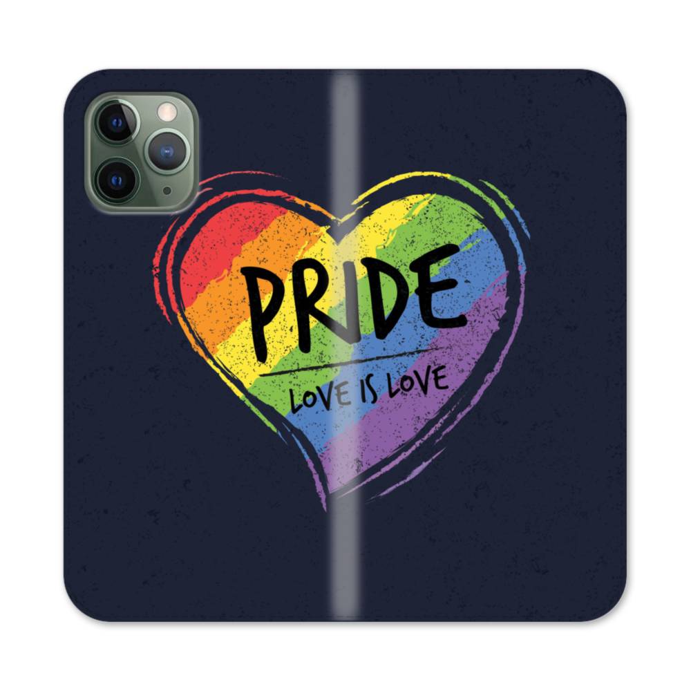 英文字入り虹色のハート iPhone 11 Pro 手帳型ケース