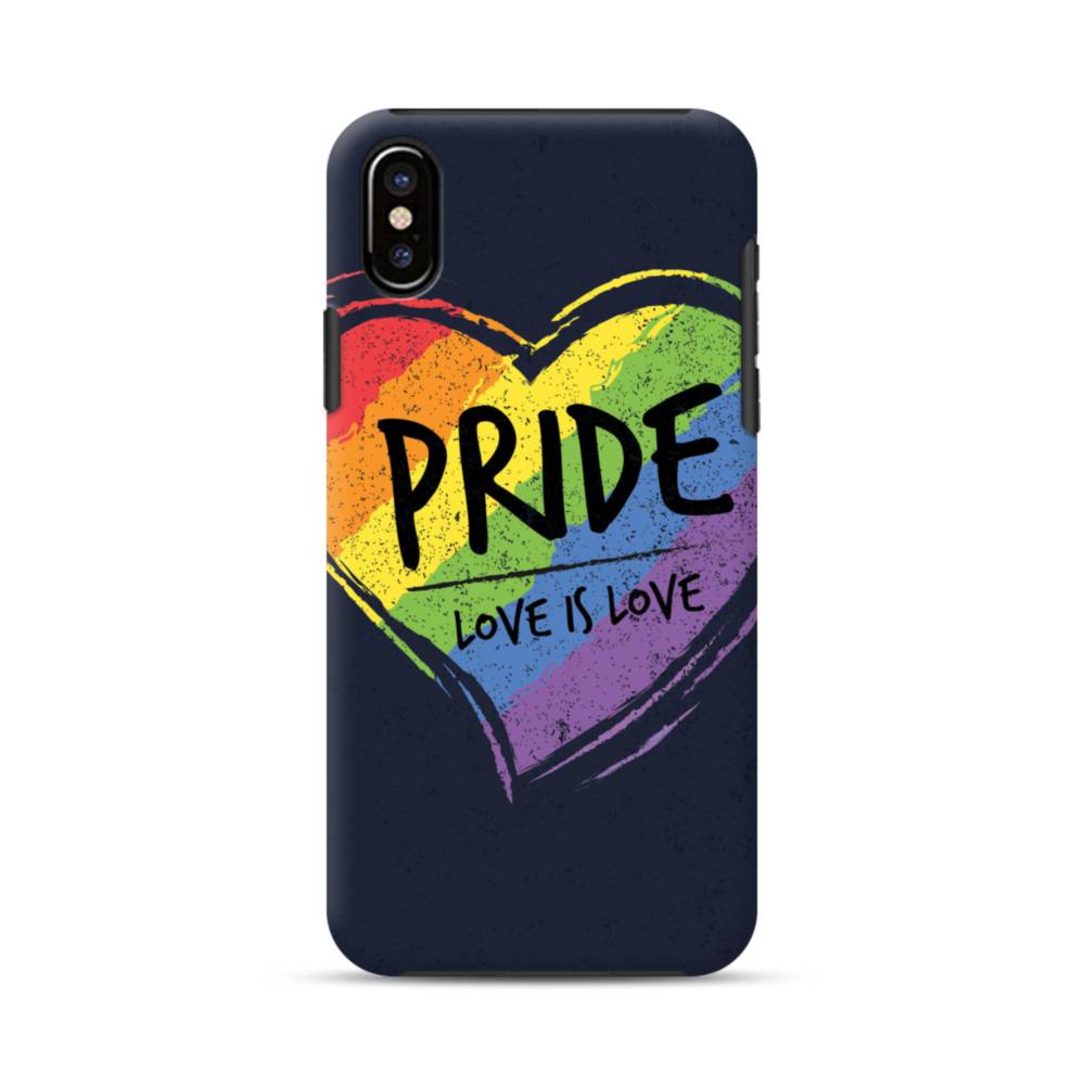 英文字入り虹色のハート iPhone X タフケース