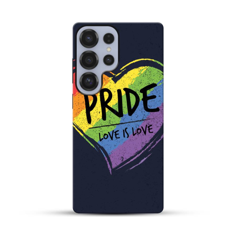 英文字入り虹色のハート Samsung Galaxy S25 Ultra タフケース