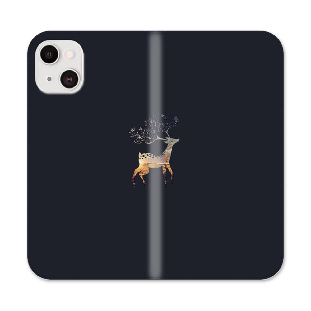 キリン 森 神秘的 黒 ワンポイント iPhone 13 手帳型ケース