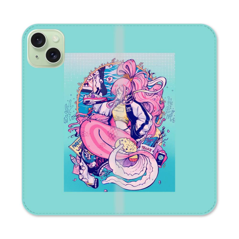 人魚・ピンク iPhone 15 Plus 手帳型ケース