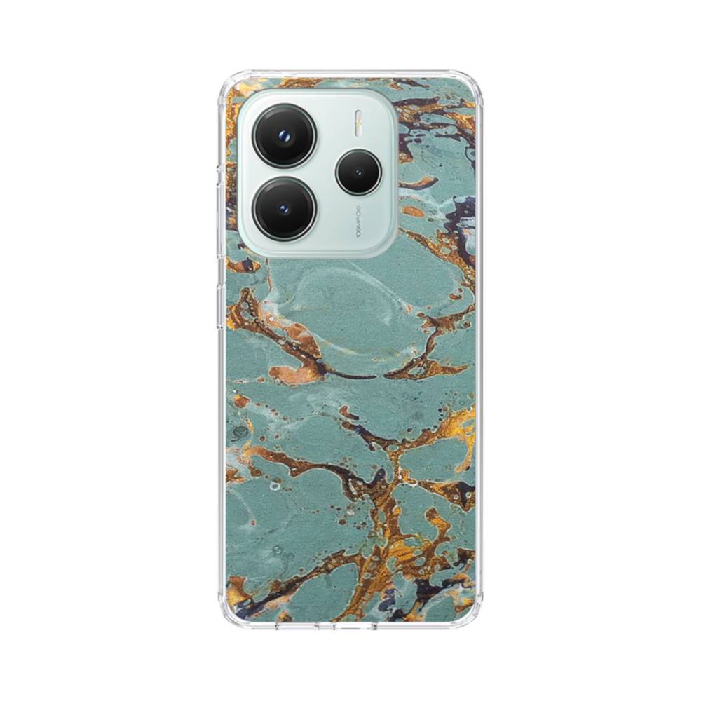 マーブル(大理石)模様:エメラルド&ゴールド Xiaomi Redmi Note 14 5G クリアケース