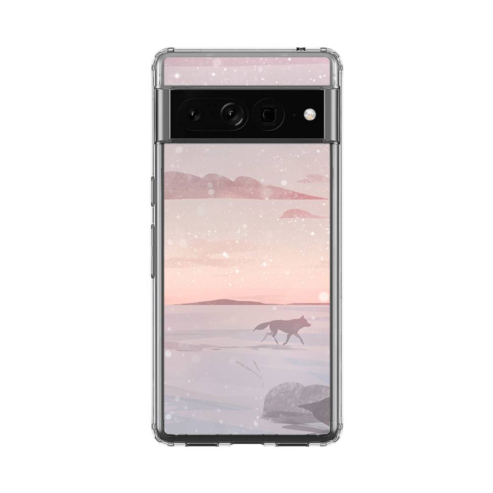 冬の野原を走る狼 Google Pixel 7 Pro クリアケース
