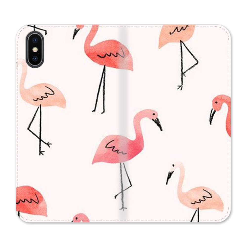 シンプル・可愛いフラミンゴ・パターン iPhone XS Max 手帳型ケース